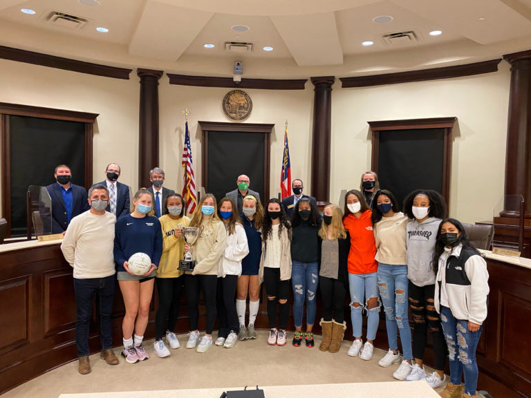 Sugar Hill Mayor, Steve Edwards, Sugar Hill City Council, and the All-In U18 Girls Proclamation for All-In’s first State Championship!